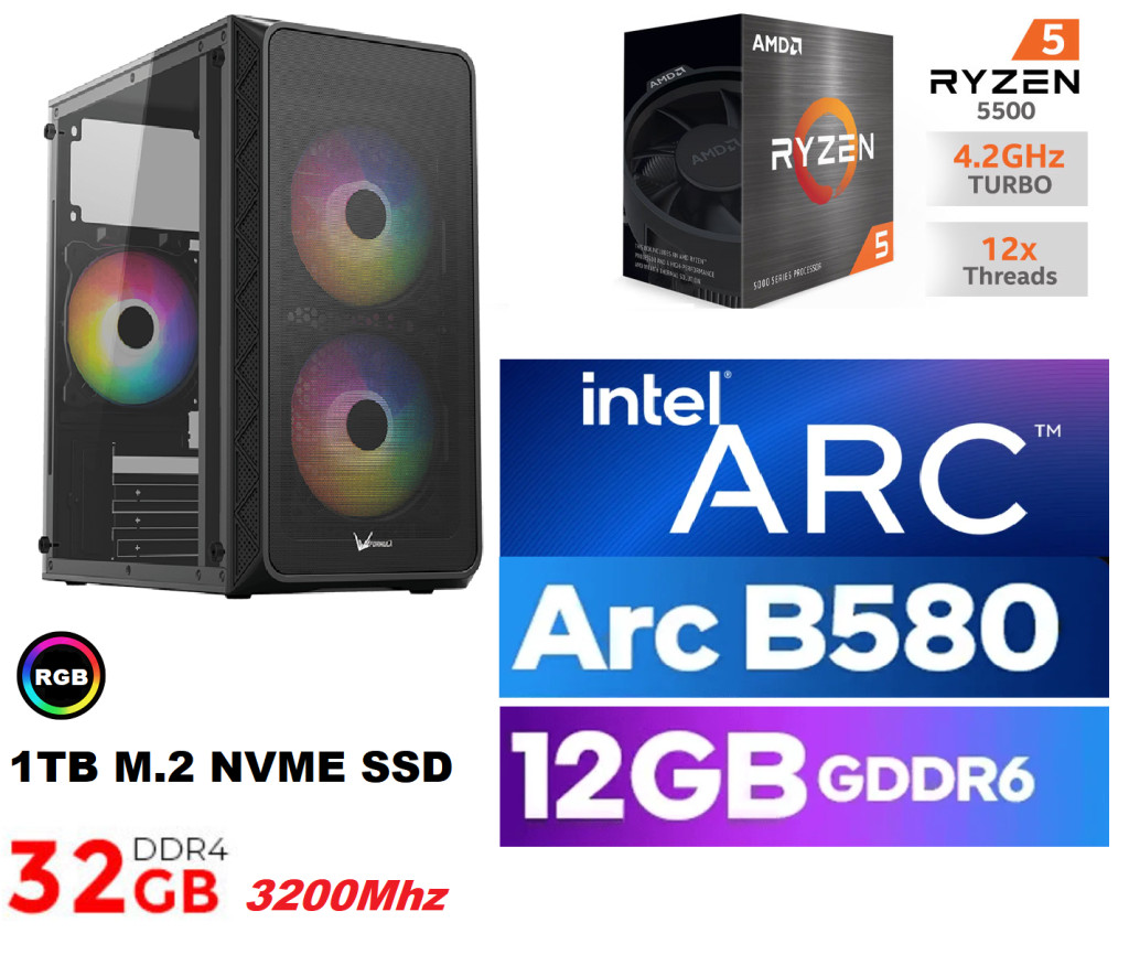 CPU:AMD Ryzen 5 5500 3,6GHz Turbo: 4,2GHz 6mag/12 szál 19MB Cache