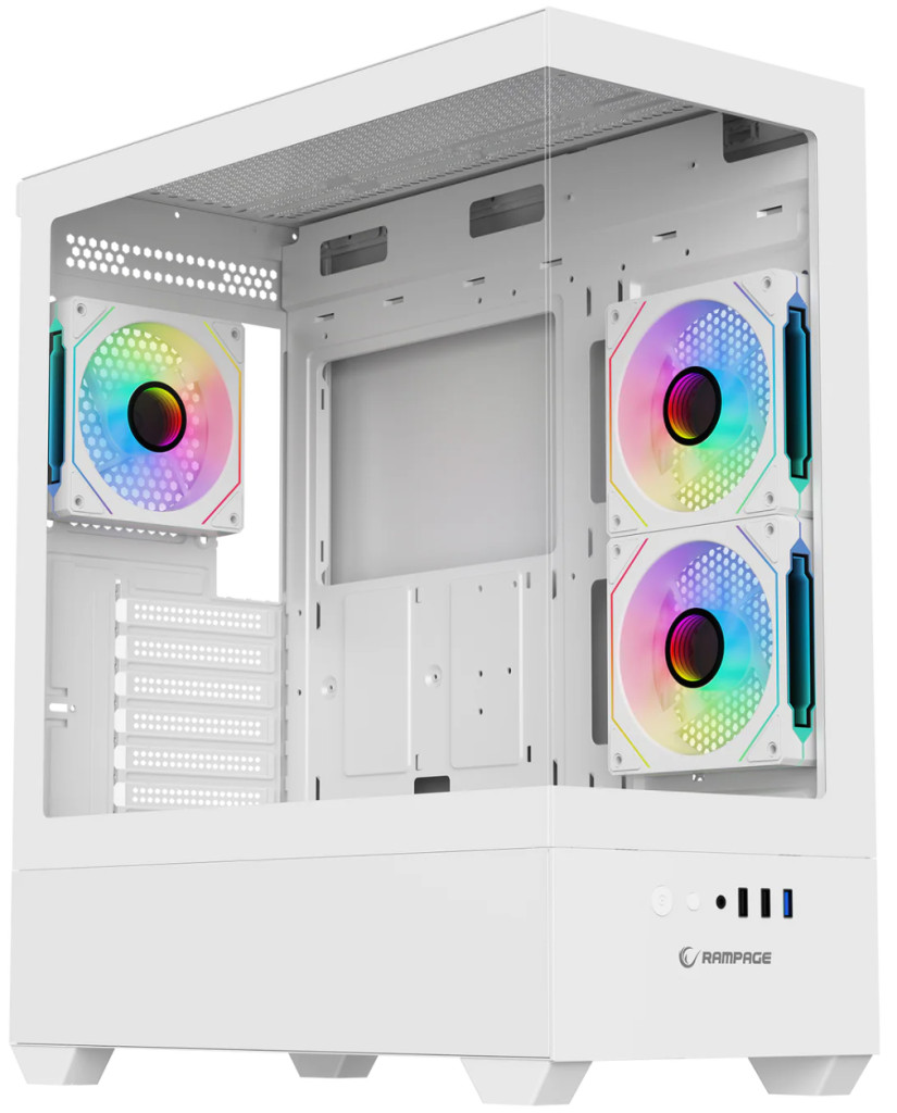 PC ház: Fekete vagy fehér RGB gamer ház, edzett üveg elő és oldallap, 4db 12cm RGB LED ventilátor
